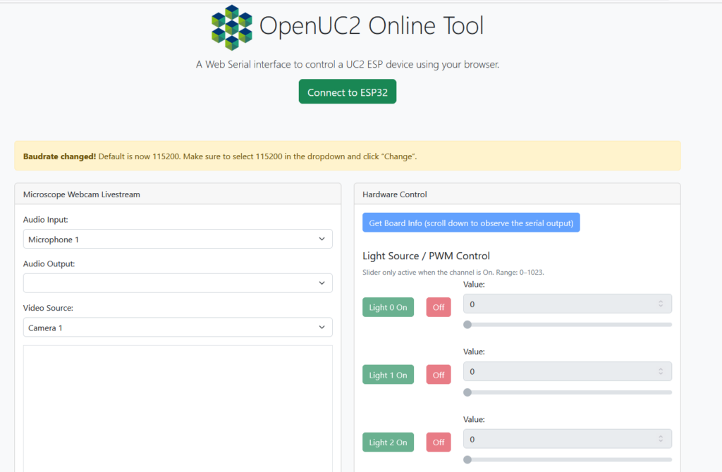 Operate your microscope using a physical controller or a browser-based WebSerial interface, allowing seamless control and live feedback directly from your device. The firmware for the esp32c3 can be found here https://youseetoo.github.io/